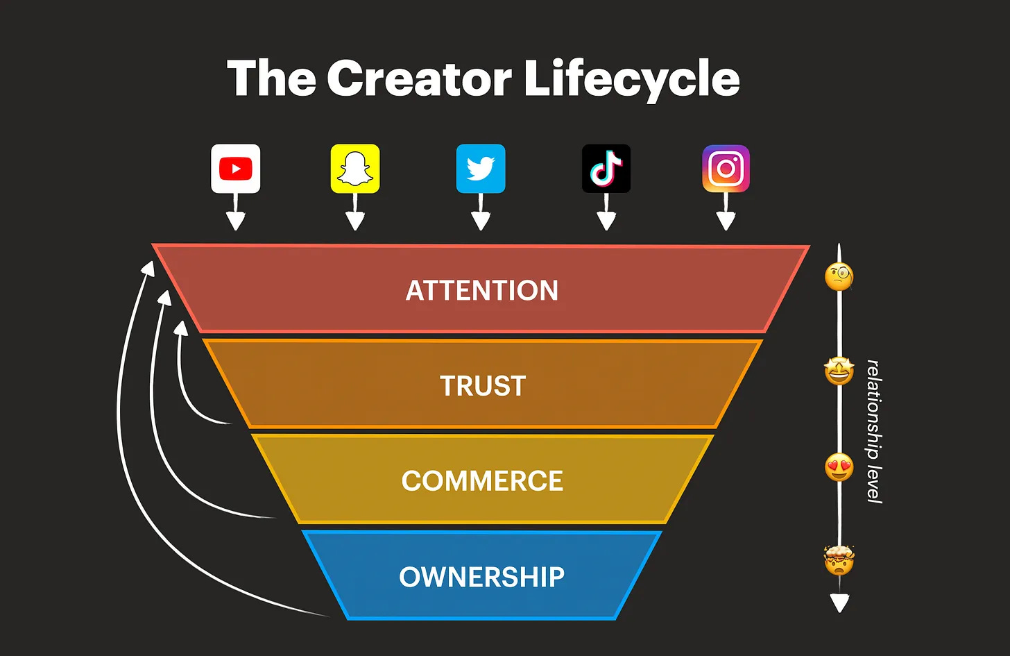 Hugo Amsellem nailed this in his 2021 "Creator Lifecycle" piece: "Early stages run on attention. But survival, scale, and renewal depend on intention."